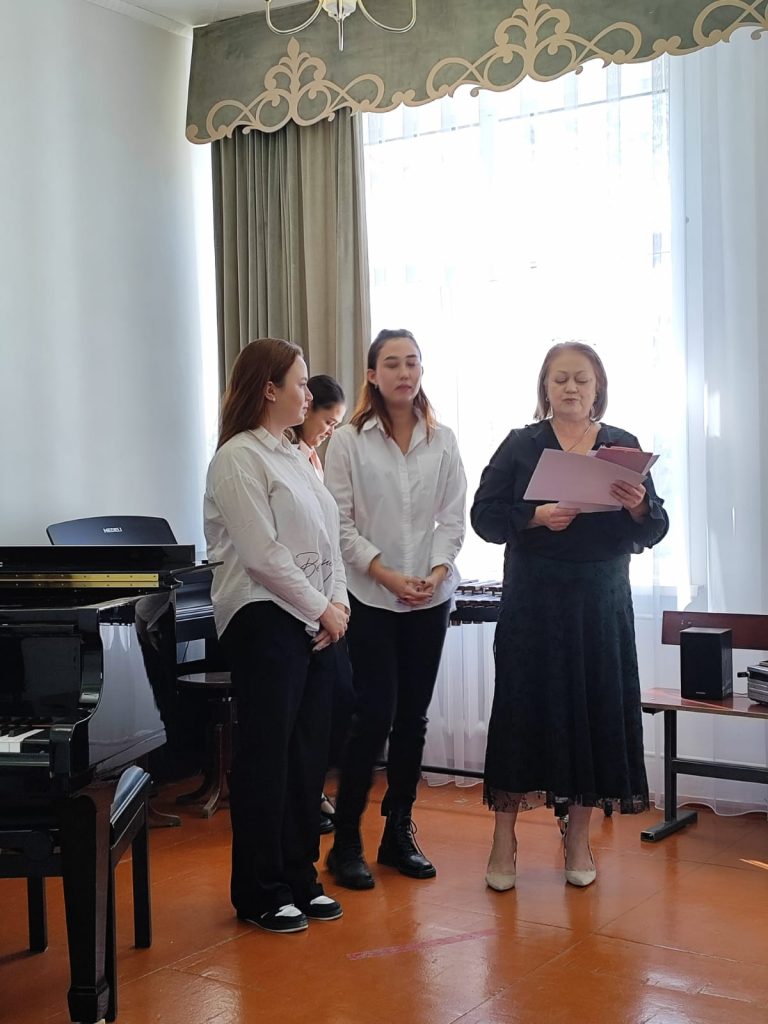 В рамках празднования Дня учителя в ДШИ проведены мероприятия: школьная торжественная, где в торжественной обстановке поздравляли юбиляров педагогического труда — Мавлет М., Ларичеву Н.И., за их профессиональную деятельность, прозвучали напутственные слова молодым специалистам Геливеря М.В. и Байгурмановой Ж. Учащиеся подготовительных классов художественного отделения подготовили выставку творческих работ “Поздравь учителя” (пед.Прокопьева С.Д.). 3 октября на городской Торжественной была оформлена выставка учащихся художественного отделения (пед. Ольховская С.М., Сергеева Ж.Ж.), а в фойе ГДК педагогов и гостей города музыкальными композициями встречал ансамбль скрипачей, под руководством Каримовой А.Б. Ансамбль педагогов школы принял участие в городском праздничном концерте ко Дню учителя с попурри на любимые мелодии.